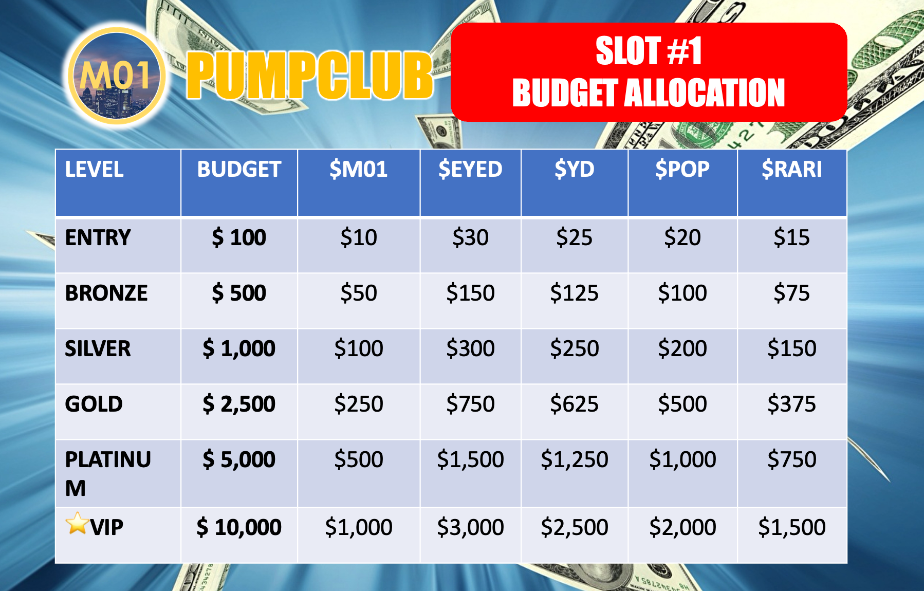 For example, if you plan to invest $100 in the $M01 PUMP CLUB, y